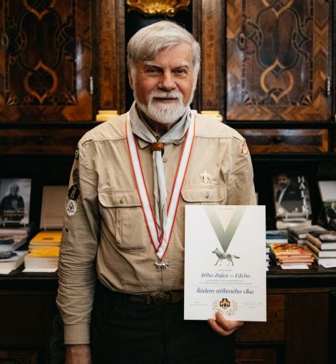 Mgr.Jiří Zajíc OFS obdržel jen o několik dní později nejvyšší skautské vyznamenání, Řád Stříbrného vlka. Ocenění se bratru Jiřímu dostalo při příležitosti 30. výročí /již třetího/ obnovení českého skauta-Junáka, na kterém se významně podílel. Jeho činnost se však datuje už k druhému obnovení Junáka během uvolnění v závěru let 60. K udělení řádu došlo v závěru slavnostní mše svaté v kostele Nejsvětějšího Salvátora v Praze na Starém Městě 2.prosince 2019 /v den výročí obnovení Junáka/. Hlavním celebrantem byl P. Tomáš Halík, laudatio oslavence přednesl Marek Baláš, náčelník Junáka-českého skauta. Profesor Halík v homilii hovořil o blízkých souvislostech františkánské spirituality oslavující Stvoření, a vztahem skautů k přírodě. Rovněž duchovní stránka formování mladé generace má ve skautingu nezastupitelné místo, a tvoří spojovací můstek k životu mladých v křesťanských církvích. Na bohoslužbě bylo mnoho mladých skautů a skautek, jak aktivních katolíků, tak věřících jiných denominací a sympatizantů. Ti všichni věděli o zásluhách bratra Jiřího Zajíce v jejich hnutí více než my přítomní za rodinu františkánskou. Naše převažující povědomí je o mnoha aktivitách Jiřího v Církvi a pro Církev, a tak jsme se nestačili divit, co všechno ještě k tomu dokázal vykonat a stále vykonává Jiří ve skautingu samotném, ale i v Radě dětí a mládeže a v mediálním zprostředkování těchto výchovných aktivit pro širší veřejnost. |