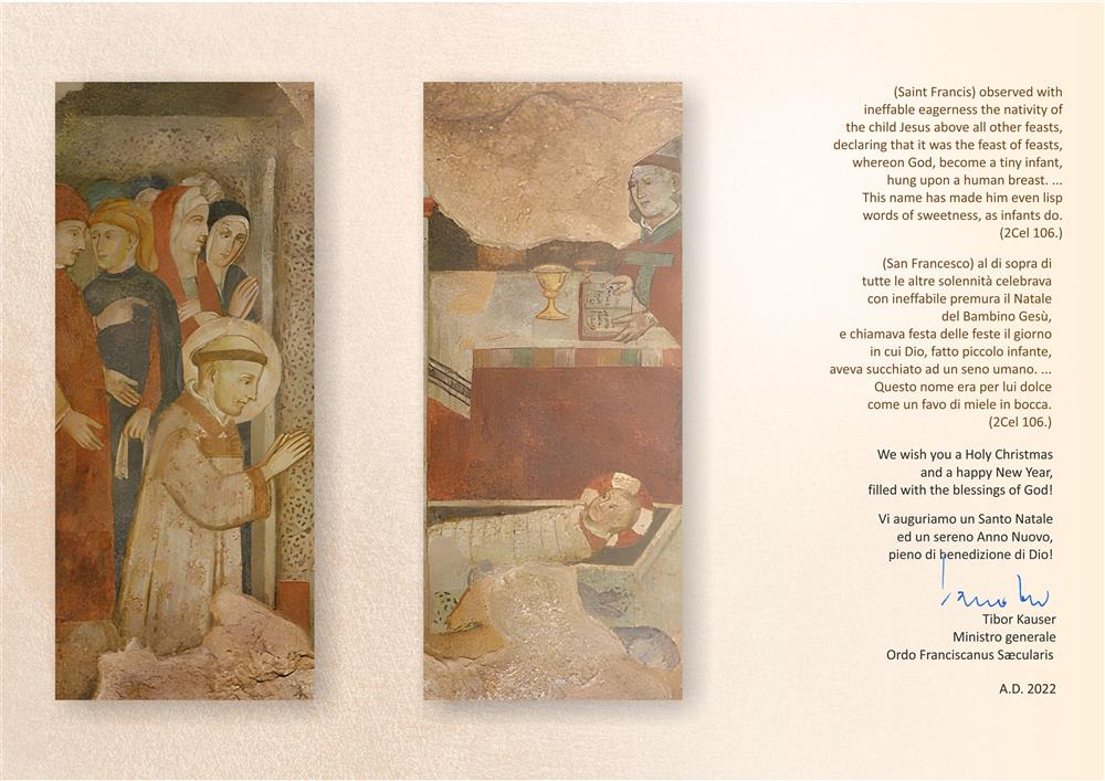 Příští rok zahájíme sérii františkánských osmistých výročí a nejprve poděkujeme Bohu za řeholi svatého Františka a za slavení Vánoc v Grecciu, které mnohým otevřelo oči pro nekonečnou Boží lásku. Všechny vás vyzývám, abyste tyto oslavy prožívali nejen tím, že si připomenete některé významné okamžiky ze života svatého Františka, ale abyste se na tyto události dívali jako na velké možnosti obnovy naší víry, obnovy způsobu, jakým žijeme naše bohaté františkánské charisma. Prosím, najděte takový způsob oslav, který nejlépe odpovídá vašim bratrským společenstvím, životním okolnostem, v nichž žijete, abyste mohli vděčněji, plněji a obnoveněji žít své povolání a poslání.