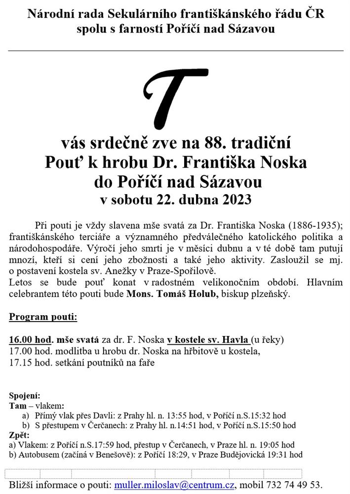 Pozvánka na pouť do Poříčí nad Sázavou 22.4.2023